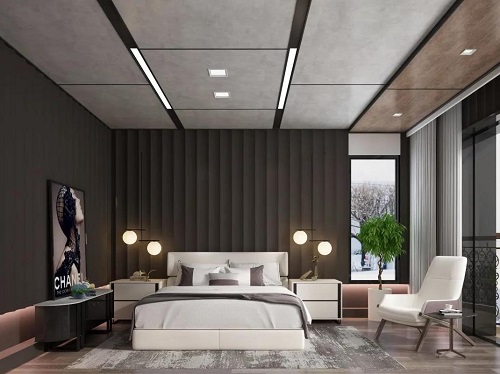 天然居全鋁大板吊頂為空間創(chuàng)造出的層次感,讓小小的次臥變得溫暖有趣。墻面盡量以淺色為主,如淺灰色、象牙白色都是不錯(cuò)的選擇。